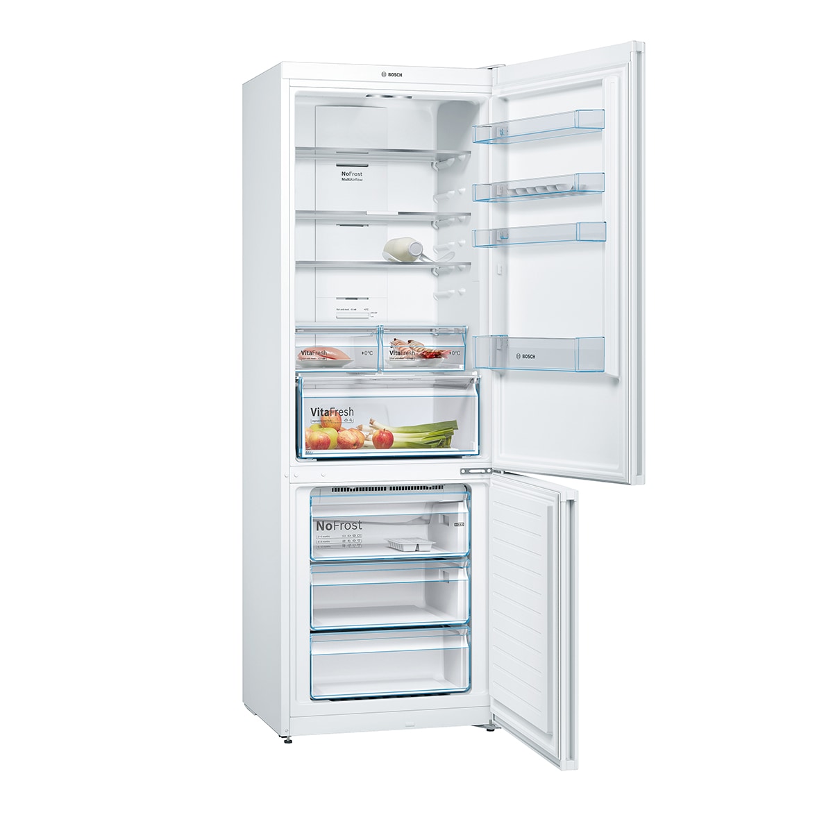 Serie 4, Frigorífico combinado de libre instalación, 203 x 70 cm, Blanco, Total NoFrost, KGN493WDA congelacion inferior,tecnologia No-Frost Frigorífico combi Bosch